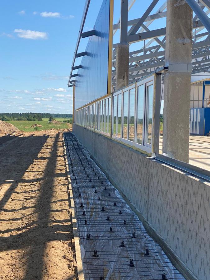 Панели предназначены для устройства наружных стен животноводческих зданий. Панели состоят из двух внешних железобетонных слоев соединенных между собой продольными и поперечными ребрами, между которыми в качестве утеплителя применяются пенополистеролбетоные плиты.